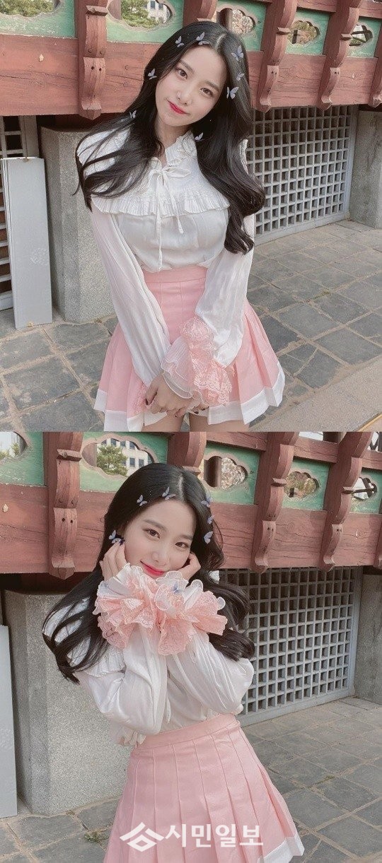 공개된 사진 속 조현은 벚꽃을 연상시키는 패션으로 팬들의 시선을 사로잡았다.