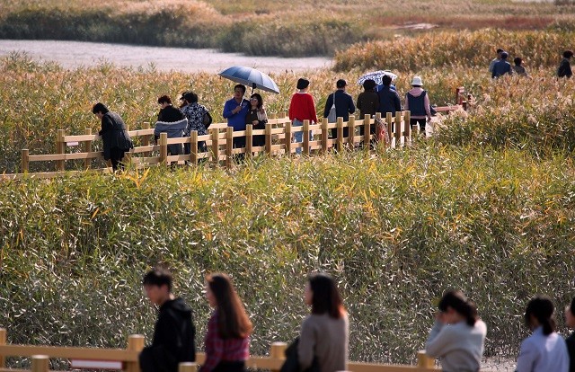 | 사진은 지난해 열린 제3회 강진만 갈대축제장을 찾은 관광객들=사진, 강진군 제공 |