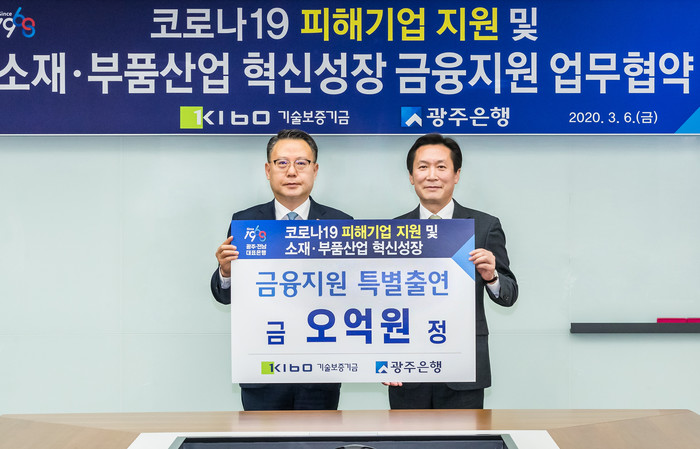 조규대 기보 전무이사는 “기보는 광주은행과의 협업을 통해 소재·부품 강소기업들의 일자리창출과 혁신성장을 지원하고, 신종 코로나바이러스 감염증 피해 등 정부의 중점 현안에 선제적으로 대응하는 금융지원 플랫폼으로서의 역할을 다하겠다”고 밝혔다.