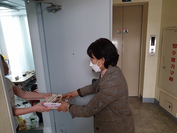| 해남군이 코로나19 확산 예방을 위해 도서대출 안심서비스를 운영하며 주문한 도서에 대해 군관계자가 직접 가정배달을 하고 있다. / 해남군 제공 |
