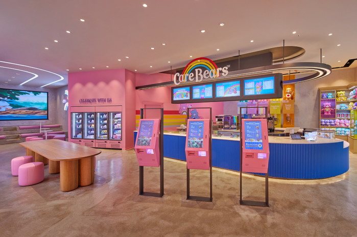 서현로데오점은 케어베어의 알록달록한 색상에서 영감을 얻은 ‘레인보우 원더랜드(Rainbow Wonderland)’ 콘셉트를 적용, 케어베어 곰돌이들과 함께 무지개를 타고 떠나는 환상적인 모험을 시각적으로 구현했다.