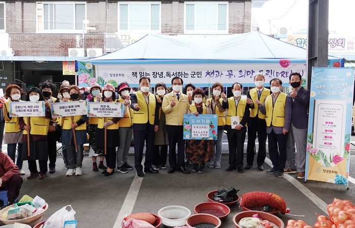 창녕문화원(원장 이수영)은 코로나19 장기화로 지친 군민들의 심신을 회복하기 위한‘책 읽는 창녕, 독서하는 군민’운동의 일환으로 세계 책의 날인 23일 창녕전통시장에서‘책과 꽃, 희망을 드림(DREAM)’행사를 개최했다.