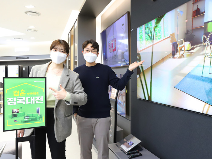 ▲ 롯데하이마트 대치점에서 모델들이 ‘컴온 롯데하이마트, 집콕대전’을 소개하고 있다. (사진제공=롯데하이마트) |