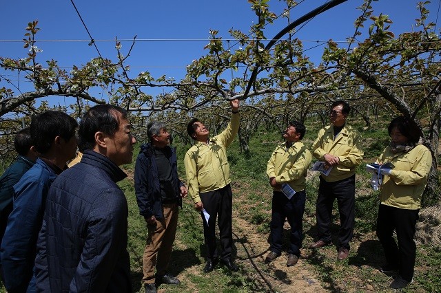 겨울철 이상 고온으로 대부분의 과수가 평년보다 10여일 빨리 개아‧발아 돼 이 달 초 5일과 6일 양일간 관내 지역의 최저 기온이 영하 4도까지 떨어지면서 개화 중이던 과수 작물이 급작스러운 저온 현상으로 냉해 피해가 발생했다.