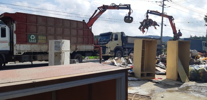 합천군(군수 문준희)은 최근 집중호우로 다량 발생된 수해쓰레기 수거를 위하여 한국농수산재활용공제조합 영농자원순환관리협의회 부산경남지부(지부장 : 이순호)로부터 18~19 양일간에 걸쳐 집게차량 10대를 지원받았다고 밝혔다.