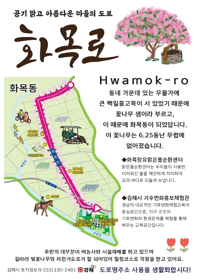 박영관 화목4통장은 “도로명주소가 화목로로 변경되면 보다 더 친근한 느낌이 들고 봄이면 만개하는 벚꽃 가로수가 그 이름과 더욱 잘 어울린다”고 말했다.