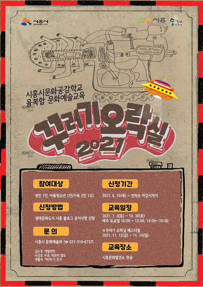 2021 문화공감학교 특화 융복합 문화예술교육 <꾸러기 오락실> 은 시흥문화발전소 창공에서 오는 7월부터 10월까지 진행된다.