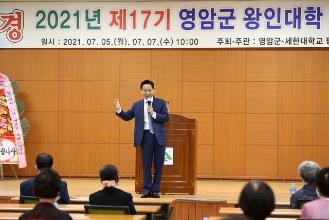 전동평 영암군수는 개강식에서 “왕인대학을 통해 코로나19 장기화로 인해 힘들고 지친 몸과 마음에 새로운 활력이 되길 바라며, 지역의 더 큰 발전과 영암군민의 행복을 위해 우리 군에서도 최선의 노력을 다하겠다.” 고 강조했다.