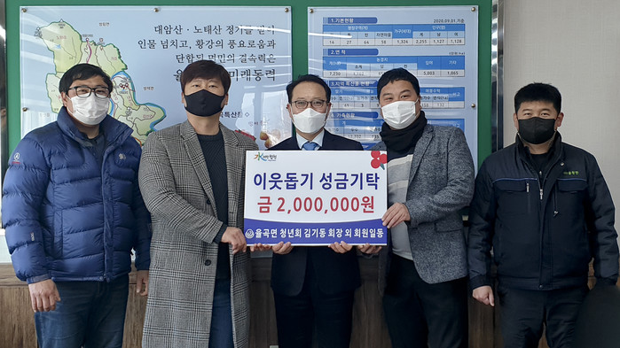 정철수 면장은 “율곡면 청년회에서 이웃 사랑을 실천해 주셔서 정말 감사하고 성금 뿐 아니라 훈훈한 마음까지 잘 전달하겠다”고 전했다.