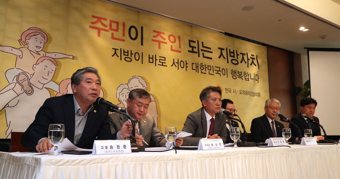 송한준 경기도의회 의장이 최근 한국프레스센터에서 열린 ‘전국시·도의회의장협의회 언론사 간담회’에 참석해 ‘지방자치법 전부개정안’의 조속한 국회 통과를 촉구했다. 사진은 발언을 하고 있는 송 의장의 모습.(사진제공=경기도의회)
