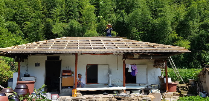 합천군(군수 문준희) 용주면 장전리에 거주하는 독거노인 어르신 댁의 지붕개량공사가 8월 2일 이루어졌다.