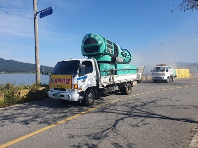특히 철새가 많이 서식하고 있는 강진만 해안도로와 담수호 주변 및 간척지에 대한 방역을 위해 광역방제기 2대를 동원해 집중 소독을 하고 있다.