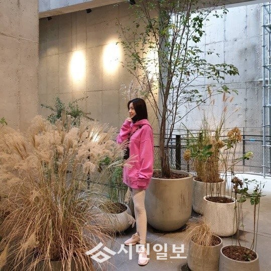 사진 속 류화영은 핑크색 후드티에 레깅스를 입은 수수한 모습으로 감탄을 자아냈다.