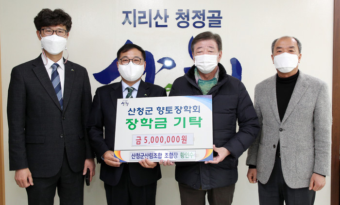산청군산림조합(조합장 황인수)이 2일 산청군청을 찾아 향토장학금 500만 원을 기탁했다.