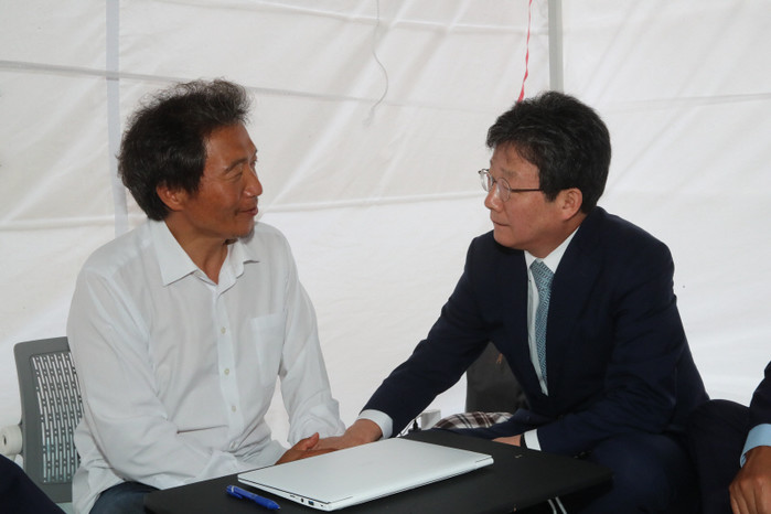 유 의원은 이날 '조국 사태'를 계기로 17일째 단식 중이던 복당파 이학재 한국당 의원을 찾았다.