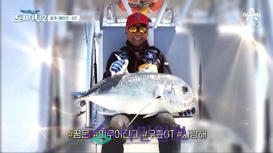 이덕화는 몸이 끌려나갈 정도로 거대한 GT를 낚았다. 윤 프로가 이덕화의 몸을 끌어안아야 할 정도였다. 이덕화는 기진맥진한 채로 GT를 낚아 올렸다. 이덕화는 무릎에 거대 GT를 올려놓고 인증사진을 찍었다.