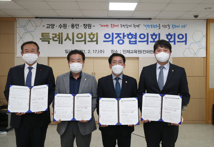 [고양=이기홍 기자] 고양시의회가 특례시의회의 성공적인 출범을 위한 4개 특례시의회 의장협의회 회의를 지난 17일 고양인재교육원에서 개최했다.