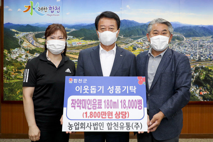 한편, 합천유통(주)은 2009년 합천군, 지역농협, 농업인이 출자하여 설립된 농업회사법인으로서 합천군 농산물 유통, 마케팅을 대표하는 통합조직으로 중추적인 역할을 수행하고 있으며, 작년 8월 수재민 물품 기탁(1,000만원 상당)과 올 4월 코로나19 극복 성금 200만원을 연달아 기탁하며 관내 어려운 이웃을 위한 나눔도 꾸준히 실천하고 있다.