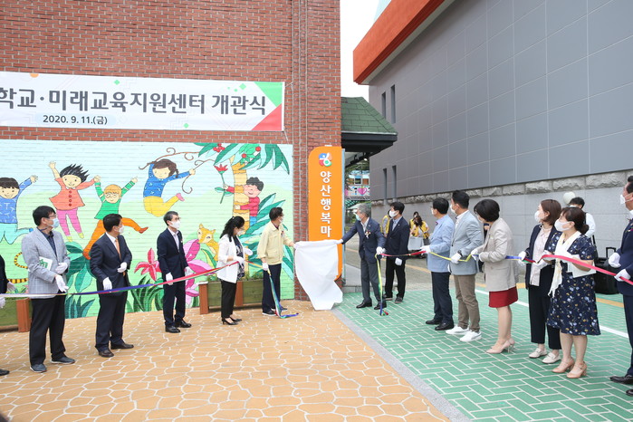 양산행복마을학교와 미래교육지원센터는 학교와 지역사회의 소통과 협력을 통한 마을교육공동체 구현을 위해 미래형 배움터로 조성하여 청소년과 지역민이 함께 배우고 성장하는 교육활동을 운영할 예정이다.