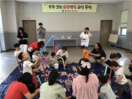 | ▲ 영암군보건소가 진행 하는 '쑥쑥 크는 오감발달 교실' 프로그램에 참여한 육아들과 젊은 엄마들 / 영암군 제공 |