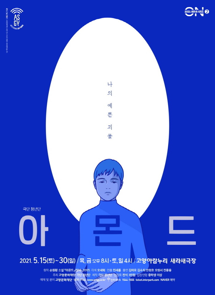 [고양=이기홍 기자] 고양문화재단은 알찬 소극장 기획 시리즈를 표방하는 ‘2021 새라새 ON 시리즈’ 두 번째 작품으로 극단 청년단과 연극 <아몬드>를 오는 15일부터 30일까지 고양아람누리 새라새극장에서 선보인다.