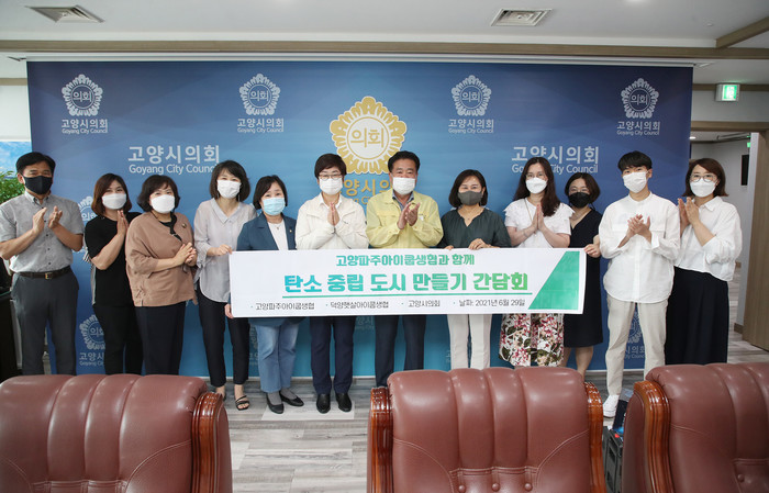[고양=이기홍 기자] 고양시의회 이길용 의장이 6월 29일 의장실에서 고양파주아이쿱생협(이사장 김민아) 회원들과 탄소 중립 도시 만들기 간담회를 가졌다.