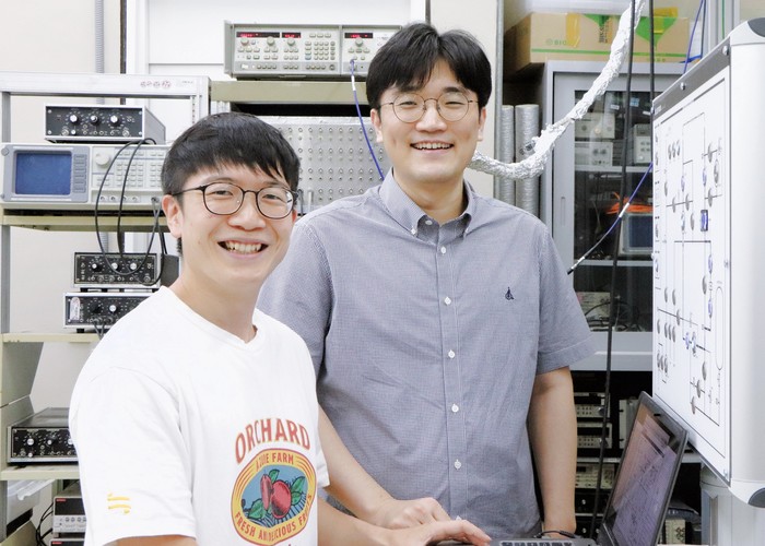| ▲ 마이크로파 세기를 기존 대비 약 10억 배 향상된 민감도로 검출할 수 있는 초고감도 검출기를 개발한 포스텍 물리학과 이길호 교수 연구팀.(왼쪽부터)정우찬 석박사 통합 과정 학생, 이길호 교수.(사진제공=삼성전자) |