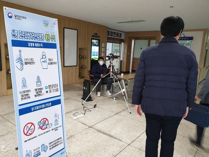 함안군은 지난27일부터 본청 중앙출입문을 제외한 모든 출입문을 통제하고 직원 및 내방 민원인들을 대상으로 열화상 카메라를 운영한 체온측정을 통해 코로나19 예방에 총력을 기울이고 있다.