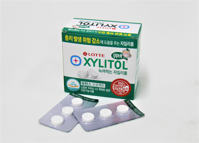 롯데제과에 따르면 ‘녹여먹는 자일리톨’은 식약처로부터 충치 발생 위험 감소 효과를 인정받은 자일리톨을 사용한 건강기능식품이다. 껌이 아닌 청량 캔디 형태이기 때문에 입 속에 충분히 머무를 수 있도록 천천히 녹여 먹는 것을 권장한다. 권장 섭취량은 한 알(2g)씩 하루 세 번이다.