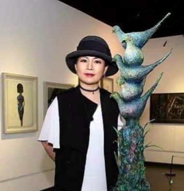 한지를 풀로 붙이고 다 마른 후에 다시 한지를 붙이기를 반복해서 형태를 만들고 그 구조위에 세상의 바람과 햇살과 빗방울들의 흔적들을 남기고 비로소 기쁨과 환희의 판타지를 만드는 그녀의 작업은 한지공예작가다.
