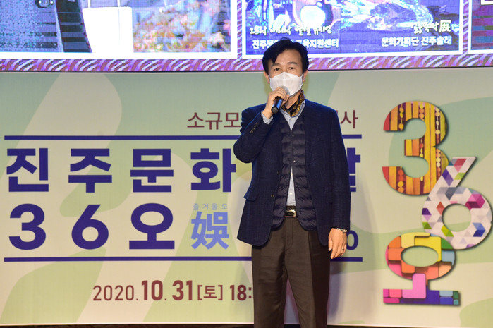 진주시는 지난 10월 31일 오후 6시 시내 중앙광장로터리 인근에서 소규모 문화예술행사인 ‘진주문화생활 36오(娛)’ 시작을 알리는 오픈 행사를 개최했다. 이날 행사에는 조규일 진주시장, 이상영 시의회 의장, 시의원을 비롯한 지역 문화예술 단체 관계자와 시민 등이 자리를 함께 했다.
