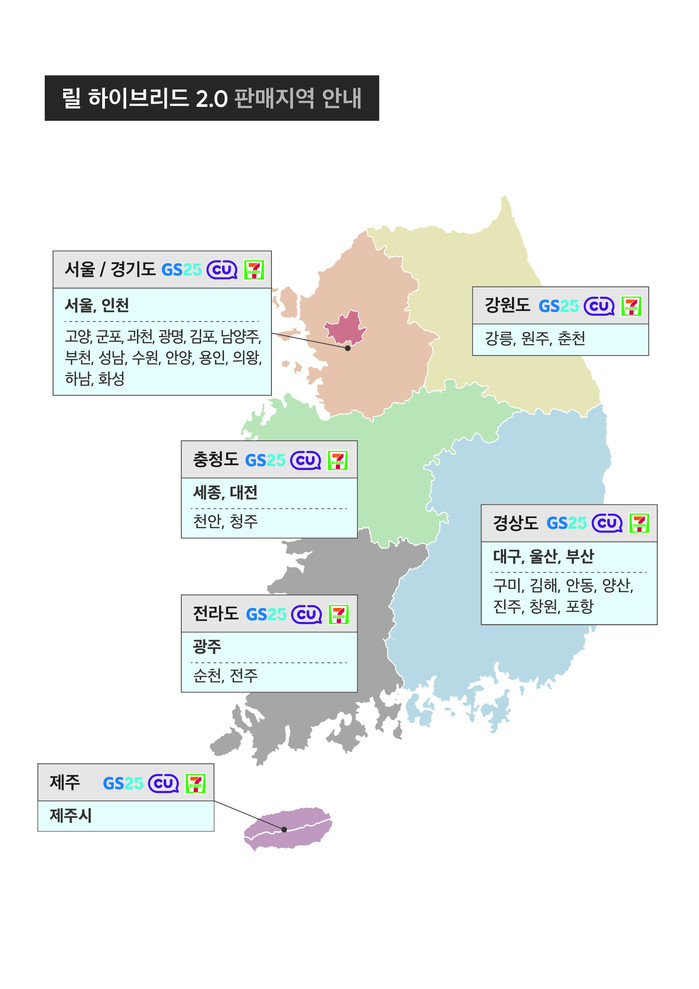 이로써 릴 하이브리드 2.0은 오는 6일부터 서울시, 6대 광역시, 세종특별시와 전국 29개 주요 대도시의 편의점 2만6170개소에서 구매가 가능하다.