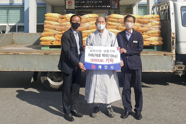 합천 해인사에서는 어려운 시기에 쌀이나 성금 등을 보내 지역민을 위한 뜻 있는 기부를 이어오고 있다.