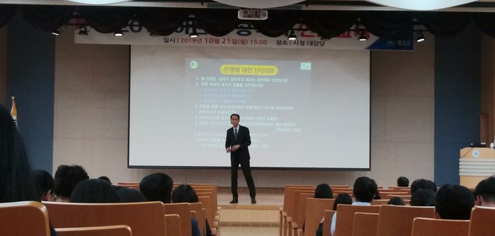 강사로 초빙된 유동곤 강사는????전쟁사를 통해본 한반도 전쟁가능????이라는 주제로 한반도 통일 환경과 여건, 강한 안보와 평화 통일을 위한 공직자의 역할과 임무에 대해 강연했다. 다소 딱딱할 수 있는 강연을 활기차고 재미있는 분위기로 진행해 교육의 호응도를 높였다.