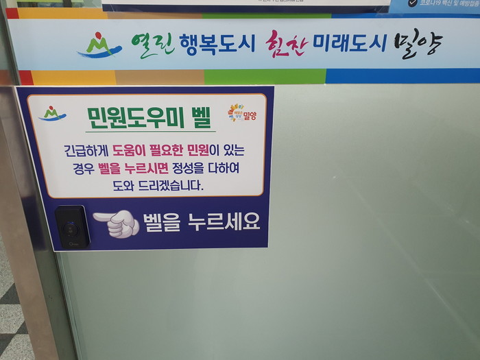 밀양시는 고객감동을 실천하기 위해 ‘차량등록 민원도우미 벨’을 설치해 운영한다고 밝혔다.