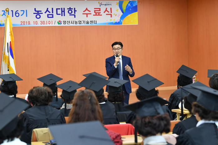 양산시농업기술센터(소장 이해걸)는 농심함양과 도농교류 활성화를 위해 개강한 제16기 농심대학이 지난달 30일 수료식을 끝으로 모든 교육과정을 마무리하며 80명의 수료생을 배출했다.