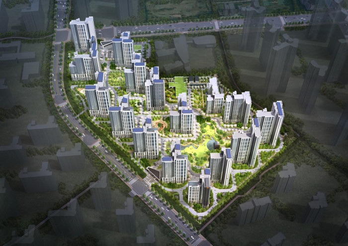 단지 내 조경 설계도 정원 형식을 도입하여 다채로운 조경과 조형물들이 단지 곳곳에 배치될 예정이다.