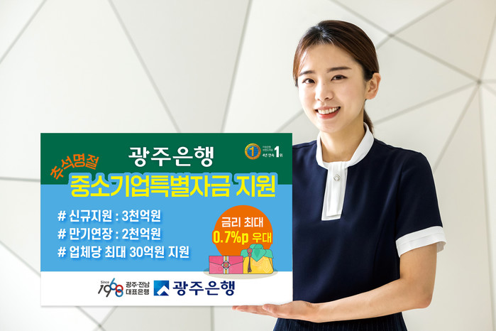 [시민일보 = 이대우 기자] 광주은행(은행장 송종욱)은 추석명절을 앞두고‘중소기업 특별자금대출’로 신규자금 3000억원을 편성, 오는 10월15일까지 긴급 지원한다.