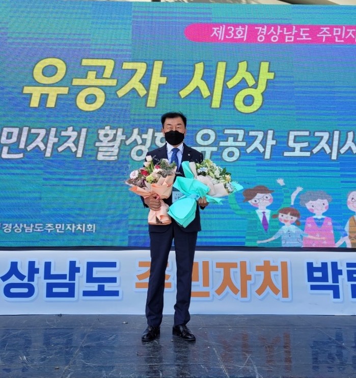 함안군 김점근 가야읍 주민자치회장이 지난 5일 ‘제3회 경상남도 주민자치박람회’ 개막식에서 주민자치 활성화 유공 도지사 표창을 수상했다.