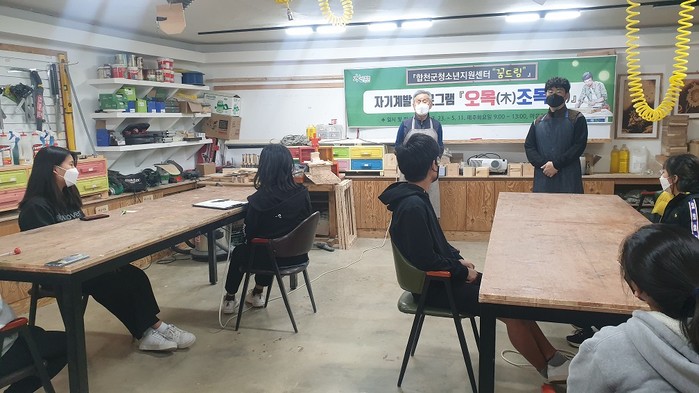 합천군(군수 문준희)청소년지원센터 꿈드림에서는 3월 23일부터 5월 11일까지 매주 화요일 9시부터 13시까지 자기계발 프로그램 「오목(木)조목(木)」을 마을지기목공소에서 운영한다.