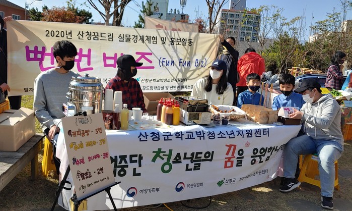 경남 산청군 학교밖청소년지원센터(산청 꿈드림)가 청소년들을 위한 실물경제 체험활동 ‘뻔뻔비즈(Fun Fun Biz)’를 진행했다고 11일 밝혔다.