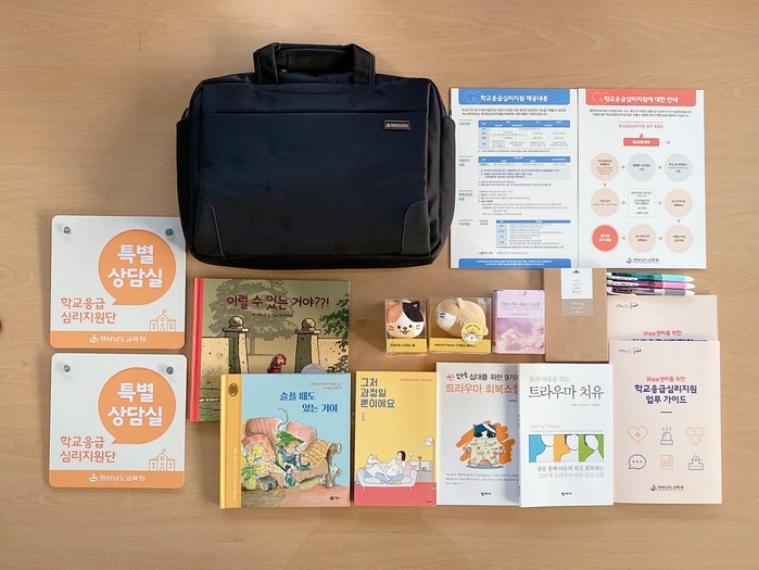 경상남도교육청(교육감 박종훈)은 코로나19 지속에 따른 학생들의 심리.정서적 지원을 위해 ‘학교응급심리지원 꾸러미’ 150벌을 자체 제작하여 18개 교육지원청 Wee센터 담당자 전원에게 배부했다고 5일 밝혔다.