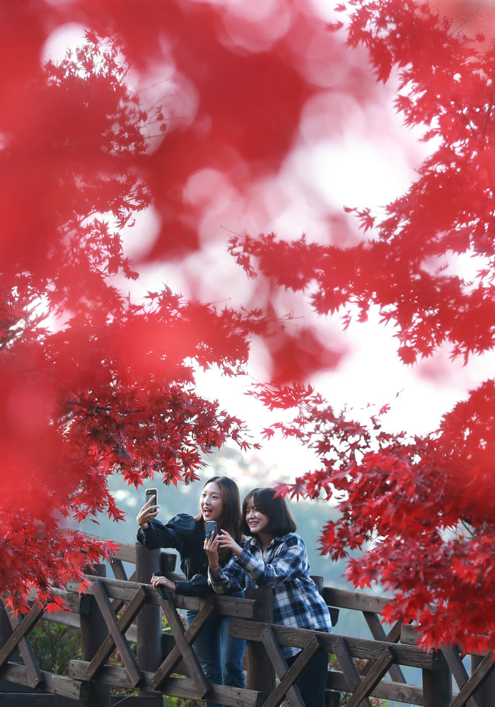 29일 경남 함양군 오도재 단풍길이 깊어가는 가을색으로 물들어 있다.