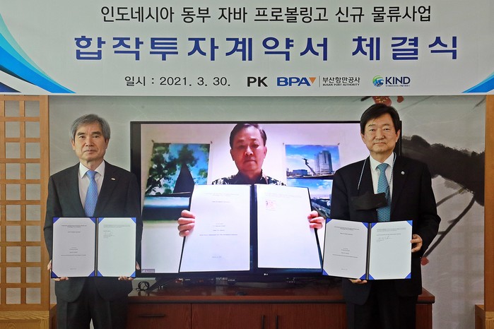 부산 항만공사(BPA, 사장 남기찬)가 인도네시아 동부 자바주 프로볼링고항 보세창고 건립·운영 등 신규 물류사업 추진을 위해 인도네시아 물류회사 PK 및 한국해외인프라도시개발지원공사(KIND, 사장 허경구)와 합작투자계약을 체결했다고 30일 밝혔다.