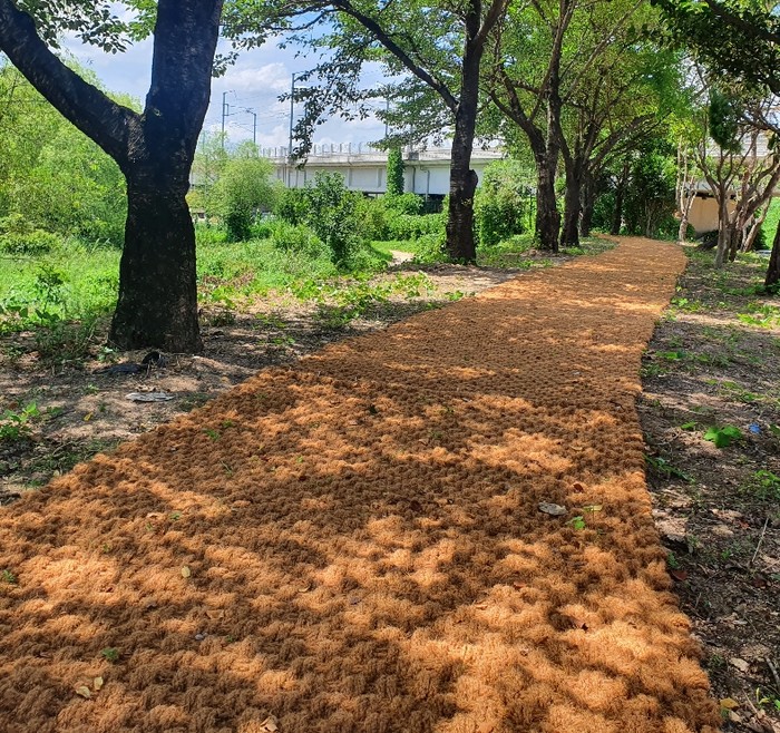이번에 조성된 공원은 며칠에 걸쳐 풀베기와 나무 전지작업 등을 한 후 주변에는 새롭게 마사토를 깔아 깔끔하게 정리했으며, 바닥에는 친환경 황토매트를 깔아 찾는 이의 건강까지도 배려했다.