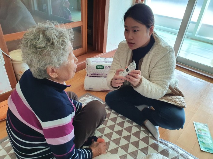| 해남군 관계자가 관내 한 어르신 댁을 방문해 건강상태를 점검하며 대화를 나누고 있다. / 해남군 제공 |