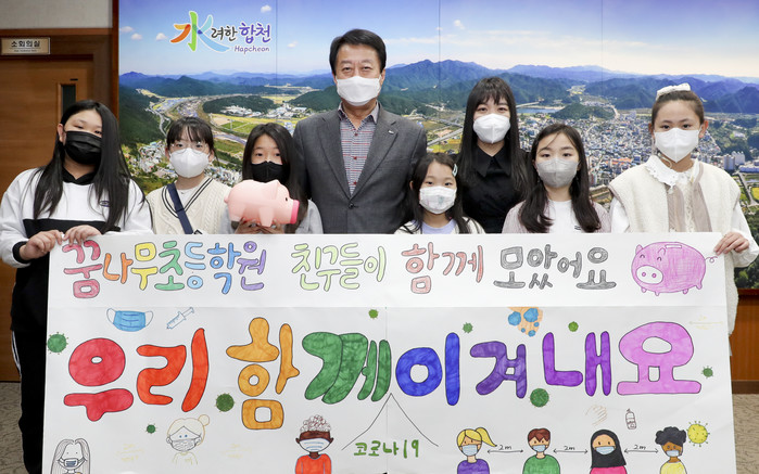 합천군은 관내 꿈나무 초등학원 원생(초등학생 6명)들이 23일 합천군청을 방문해 코로나 19 여파로 어려운 이웃을 돕고자 저금통을 기탁했다고 밝혔다.