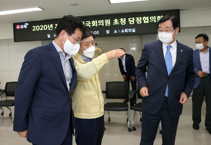 이날 당정협의회에는 허성곤 김해시장과 민홍철, 김정호 국회의원을 비롯, 송유인 시의회의장, 관계공무원 등이 참석해 추석 명절 민생안정 방안과 코로나19 확산방지를 위한 지역방역 대책을 논의하고 2021년 국고증액 대상사업 9건, 주요 현안건의사업 15건에 대한 설명을 청취했다.