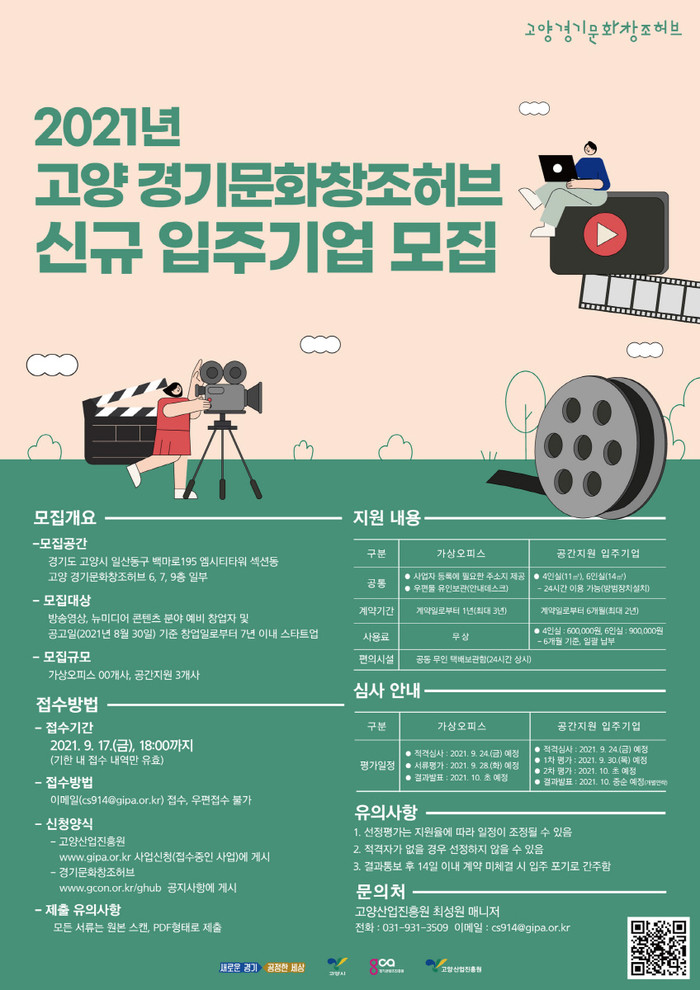 [고양=이기홍 기자] 고양시, 고양산업진흥원이 운영하는 고양 경기문화창조허브에서 오는 17일까지 신규 입주기업을 모집한다.