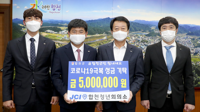 합천청년회의소(회장 문석주)는 지난 31일 합천군청을 방문해 코로나 19의 장기화로 어려운 시간을 보내고 있는 군민들을 위해 써 달라며 500만원을 기탁했다고 밝혔다.